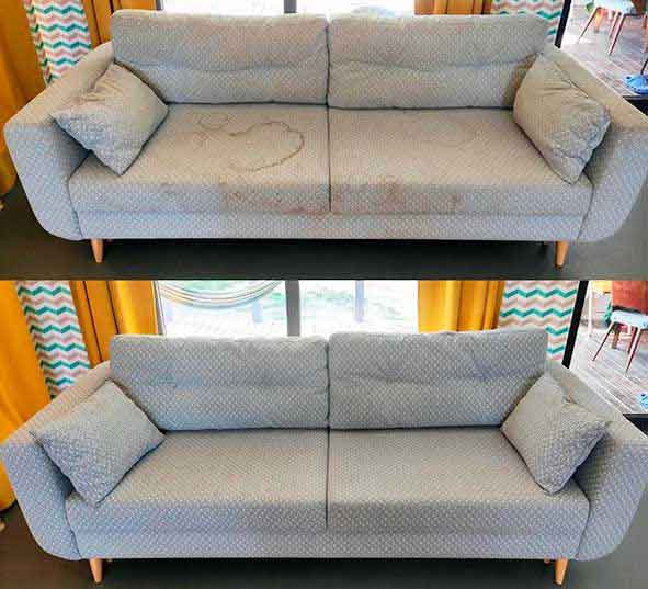 - Each material (fabric, suede, leather, faux leather, etc.) is treated with the appropriate detergent to ensure effective cleaning without harming the sofa’s durability or your family’s health.
